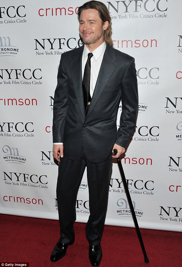 What a gentleman! Pitt helps Angie out of the car even though he's injuredThe actor appears to be on somewhat of a winning streak and tonight scooped the Best Actor gong for his work in Moneyball and The Tree of Life.