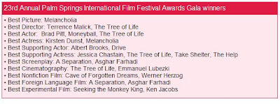 Brad was honoured at the ceremony with the Desert Palm Achievement Award which noted his acting skills in Moneyball and The Tree of Life.