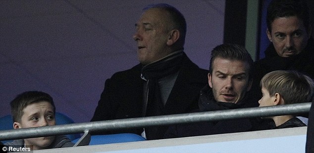 Change of scene: The boys are more used to watching their father play for LA Galaxy in sunny CaliforniaThe group looked completely engrossed as they watched the match from the stands, the boys gasping as they caught the action.