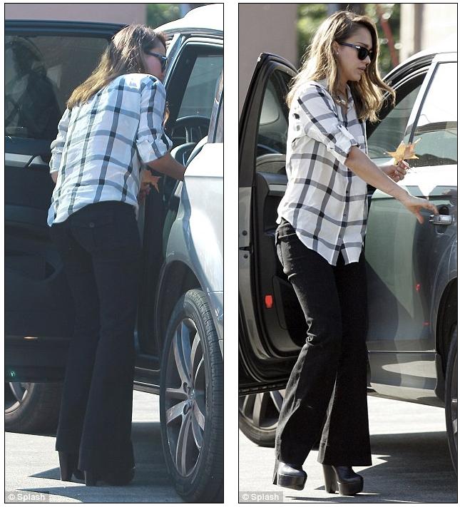 A flare for the dramatic: Jessica Alba showed off the figure that made her a movie star as she pranced around in California yesterdayShe is most famous for playing the Invisible Woman in comic book movies the Fantastic Four. But it was impossible not to notice Jessica Alba's fantastic flare as she donned an impressive pair of 70s-style bell bottoms while running errands in Los Angeles yesterday.First the shapely actress was spotted going on a brief shopping trip in the upmarket Brentwood area.
