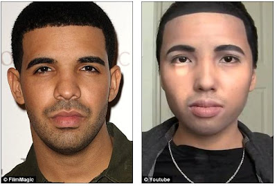 Though she states on Facebook that she is not a professional make-up artist, Promise is clearly a dab hand with the range of cosmetics at her disposal - and is an impressive impersonator to boot, pulling off the Canadian rapper's trademark mock sneer and hand gestures with aplomb.