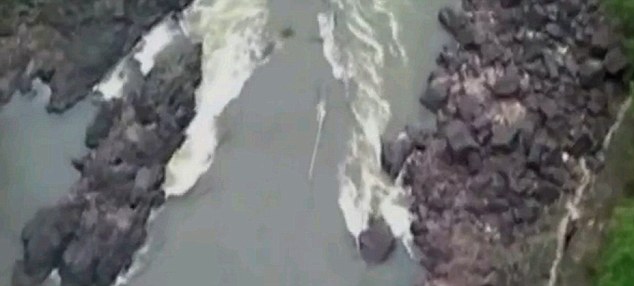 The remnants of the rope float off. Erin managed to swim to the side of the riverbank where she was treated by paramedics'It has been in operation for 10 years. This is the first time I am hearing of an incident. The probability of an incident is one in 500,000 jumps.'