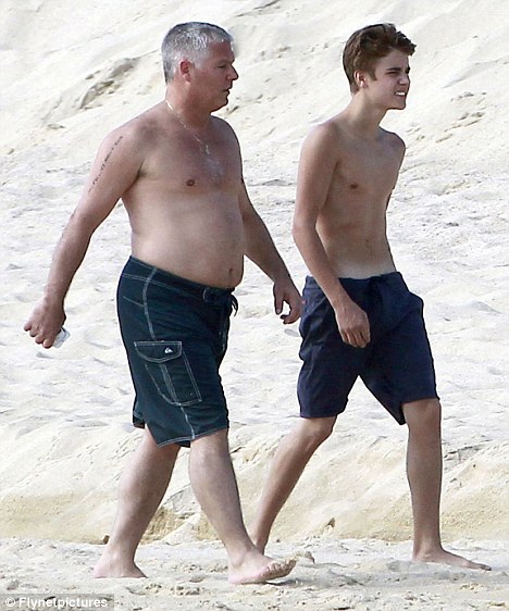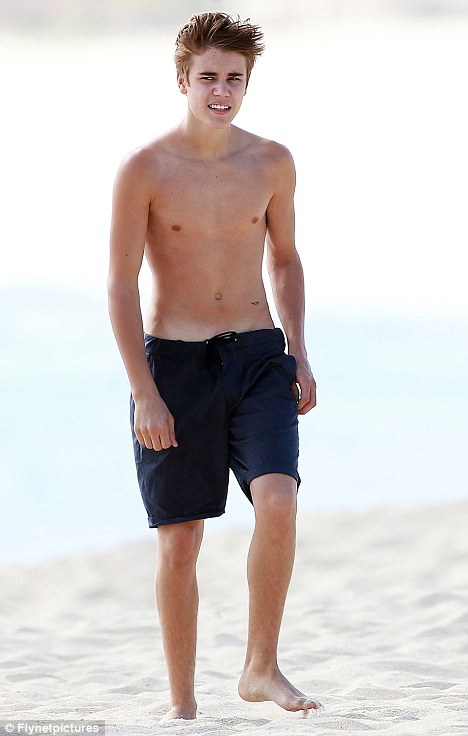 You wear it well: Justin showed off his fit, albeit stooped physique as he strolled along the sand shirtlessJustin and Selena have appeared stronger than ever after claims were made that he had fathered a baby with a female fan Mariah Yeater.