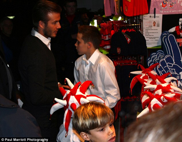 Arsenal shop: David lapped up the attention as he splashed the cash on Romeo in the souvenir shop